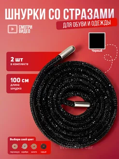 Шнурки со стразами 100 см, 2 шт черные