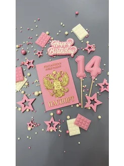 Набор шоколадный 14 лет розовый паспорт для девушки