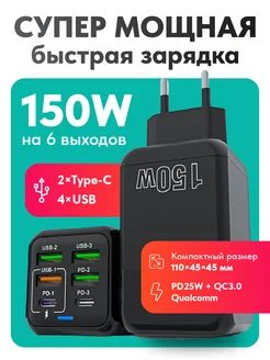 Шестипортовая мощная быстрая зарядка для телефонов