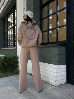 Костюм спортивный с брюками палаццо и худи оверсайз