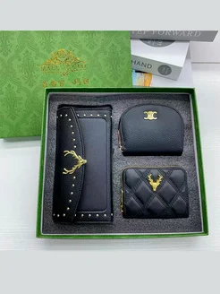 Подарочный набор кошелек большой черный 3в1