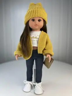 Кукла Нэни брюнетка, в горчичном
