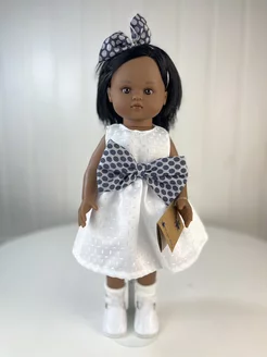 Кукла Нэни, темнокожая, в белом платье, 42 см