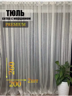 Готовая тюль сетка с мерцанием 200*260 см готовая 2 шт