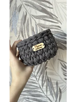 Вязанная корзинка квадратная серая
