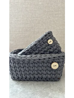 Набор серых вязанных квадратных корзинок