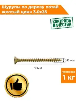 Шурупы по дереву потай 3,0х35 желтый цинк