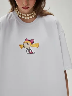 Футболка оверсайз с вышивкой Эй Арнольд белая