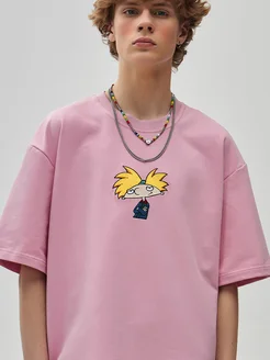 Футболка оверсайз с вышивкой Эй Арнольд розовая