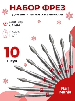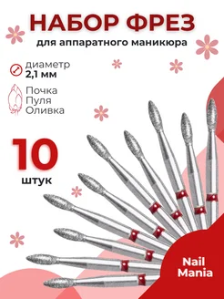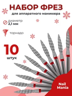 Фрезы для маникюра Торнадо, 2,1 мм, красные 10 штук