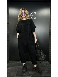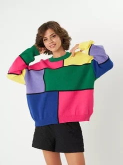 Свитшот голубой оверсайз яркий с принтом без начеса