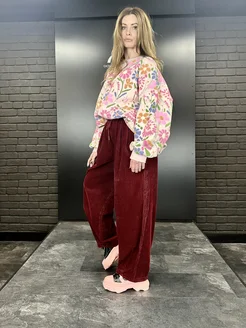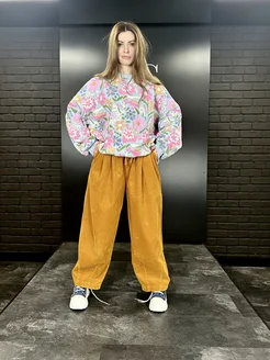 Свитшот розовый оверсайз яркий с принтом без начеса