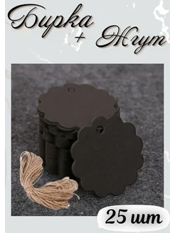 Бирки фигурные Черные 6х6 см + Жгут 25 шт
