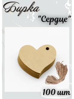 Бирки Сердце Крафт 4,5х4 см + Жгут 100 шт