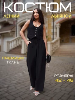 Льняной костюм брючный с жилеткой