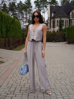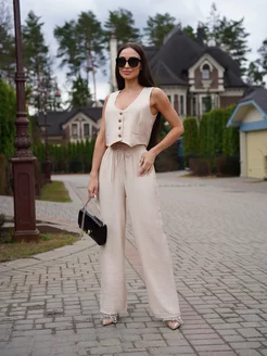 Костюм льняной с жилетом и брюками летний