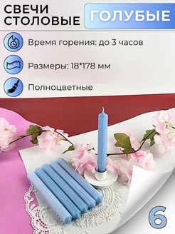 Свечи столовые полноцветные Пастель 170х18 мм голубые 6 шт