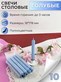 Свечи столовые полноцветные Пастель 170х18 мм голубые 10 шт