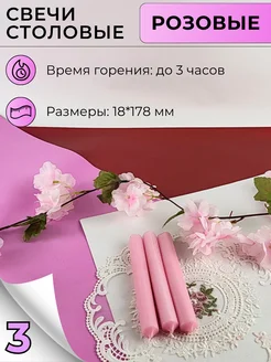 Свечи столовые полноцветные Пастель 170х18 мм роза 3 шт