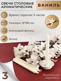 Свечи ароматические Ванильная карамель 18х180 мм белые 3 шт