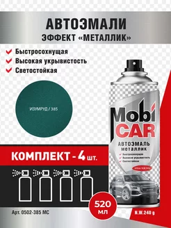 Аэрозольная автоэмаль металлик, Изумруд, 4 шт