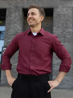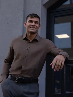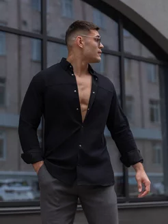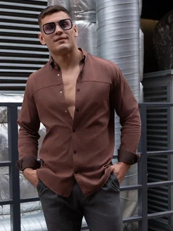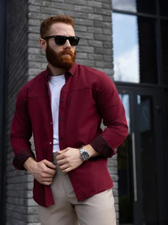 Рубашка мужская приталенная с длинным рукавом джинсовая