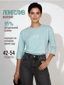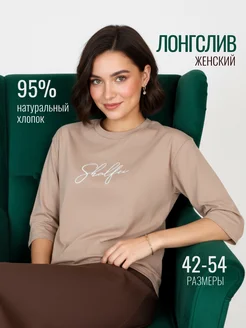 Лонгслив базовый оверсайз с принтом, рукав 3-4 хлопок