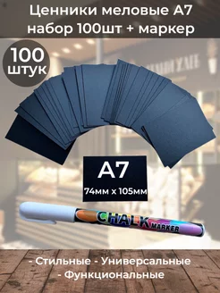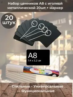 Ценники меловые А8 с держателем иголка металл 20шт + маркер