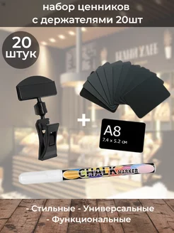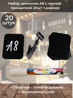Ценники меловые А8 с широкими прищепками и маркером 20шт