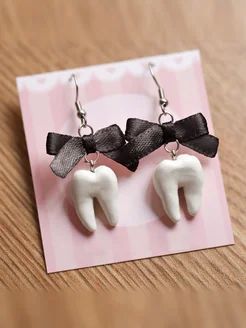 Серьги с бантиками и зубами