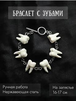 Браслет стальной с подвесками зубами