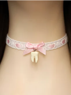Кружевной чокер с подвеской зуб
