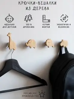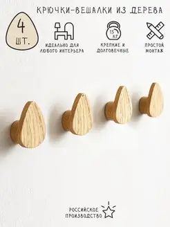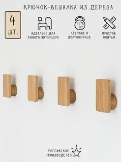 Крючок из дерева в прихожую, универсальный. 4 шт