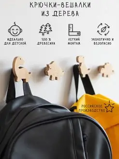 Крючки настенные детские, для одежды, рюкзака. 4 шт