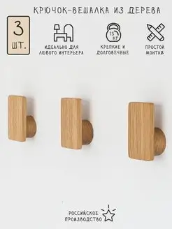 Универсальный настенный крючок-вешалка из дерева. 1 шт
