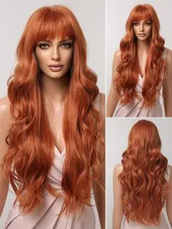Длинный вьющийся парик с челкой