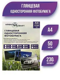 Фотобумага А4 глянцевая для струйного принтера 230г 50л