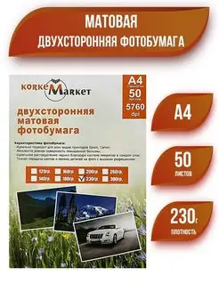 Фотобумага А4 матовая двухсторонняя для принтера 230г 50л