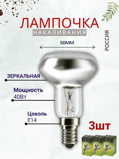 Лампочка R50 Е14 40Вт, 3шт зеркальная рефлектор