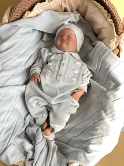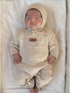 вязаный комбинезон для новорожденных с шапочкой комплект