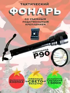 Ручной подствольный фонарь для охоты cо светофильтрами