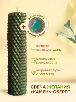 Свеча восковая магическая+камень оберег на деньги