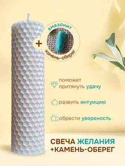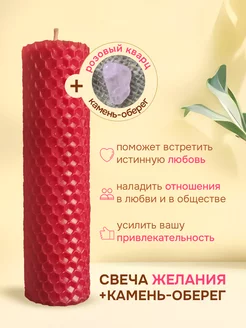 Свеча восковая магическая+камень оберег на любовь