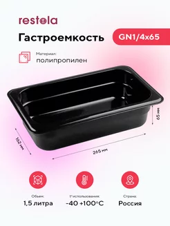Гастроемкость полипропилен 1 4, 265x162х65мм, черная