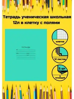 Тетрадь в клетку, линейку, косая, набор 5 шт, зелёная