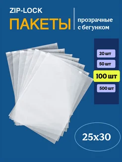Упаковочные зип пакеты с бегунком 25х30, 100 шт