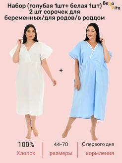 Ночная сорочка 2 штуки для беременных и кормящих в роддом