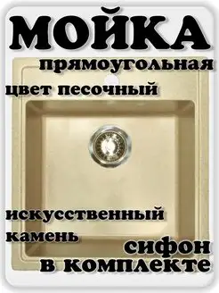 Мойка для кухни каменная врезная прямоугольная песочная