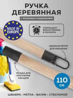 Черенок для швабры деревянный 110см с пластик наконечниками