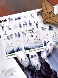 Наклейки для ногтей слайдеры маникюра 3D Зима снежинки
